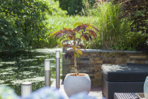Let er op dat het niet te druk wordt in je tuin. Laat bepaalde patronen vaker terugkomen en waak ervoor dat je niet té veel verschillende kleuren en materialen gebruikt. Dat zorgt voor chaos, waardoor de ruimtelijkheid in je tuin verdwijnt.